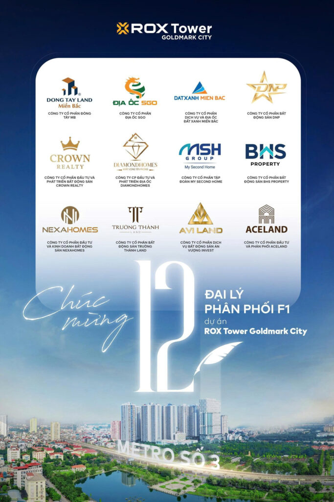 ROX Tower Goldmark City đã đã chọn lựa 12 đơn vị phân phối uy tín khắp miền Bắc trở thành cầu nối đưa dự án gần hơn với khách hàng.